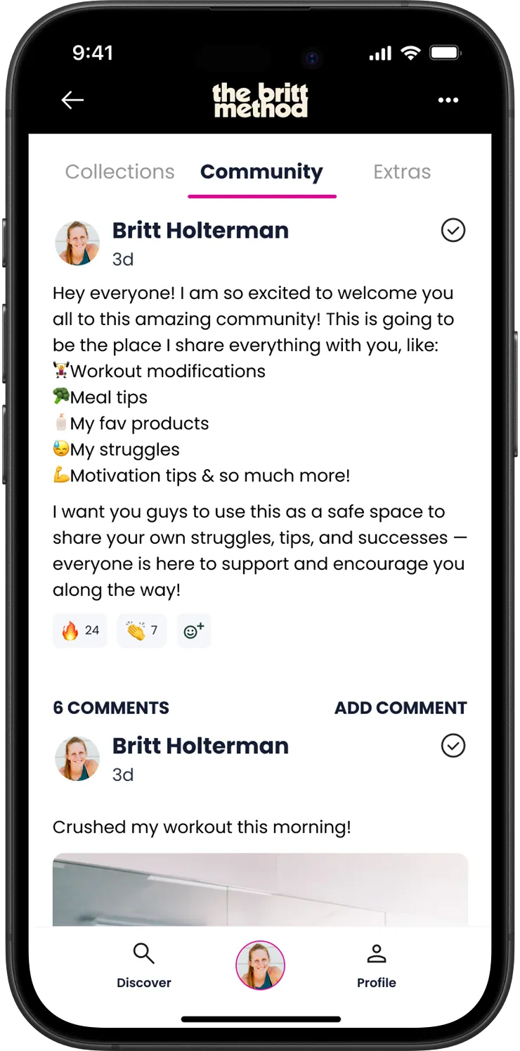 You are not doing this alone. Inside the Britt Method community, you will find encouragement, accountability, and real moms showing up just like you.